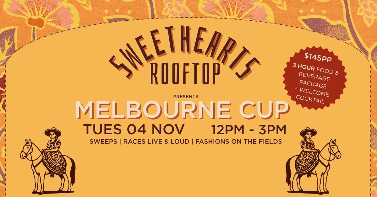 Make the most of the Melbourne Cup atmosphere with our exclusive ‘Fashions on the Field’ competition, where you can showcase your best race day attire. Plus, don’t miss out on our lucky door prizes – a fun opportunity to win, even if your horse doesn’t! Whether you’re a regular at Sweethearts Rooftop or visiting for the first time, this is the perfect place to enjoy the festivities.